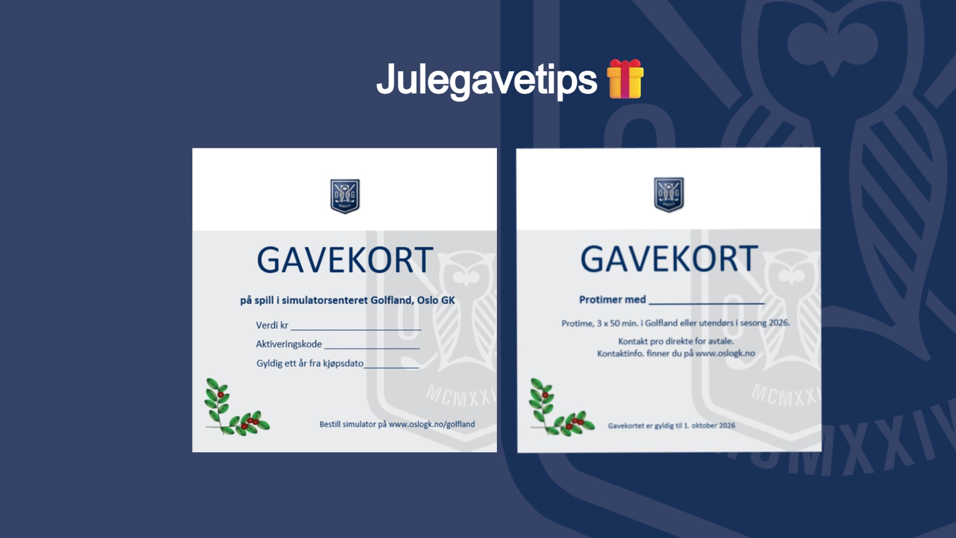 PS! Selve julegavekortet må kjøpes i Alba som beskrevet ovenfor, men hvis du ønsker å gi bort et fysisk OGK-gavekort som på bildet over, kan du sende gavekortet til egen e-post og hente OGK-kortet i Golfland. Koden som du fikk per e-post må deretter skrives på OGK-kortet.